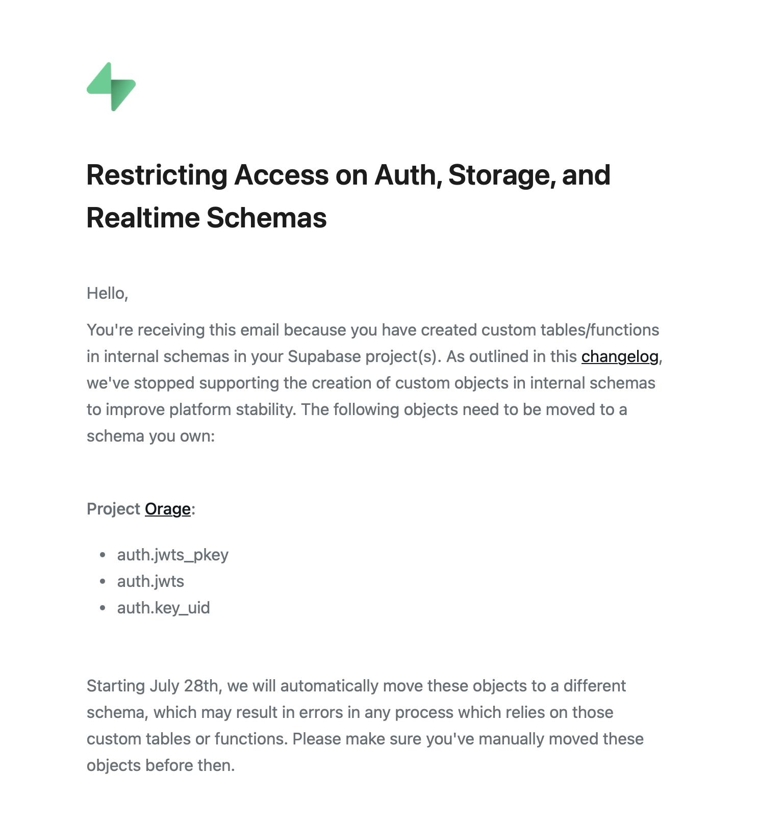 A warning that the tables I used to make these keys would not work anymore. 1 month notice. And reminder: Orage is just a side project. We had paid users relying on this to work. This was stressful.
